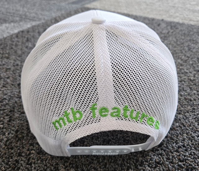 A white, high quality trucker style baseball cap with embroidery on the front and back. The design features the shape of the state of Minnesota, where Yardi is located, along with the Yardi logo. If you're a mountain biking and baseball cap enthusiast, you are going to love this hat!